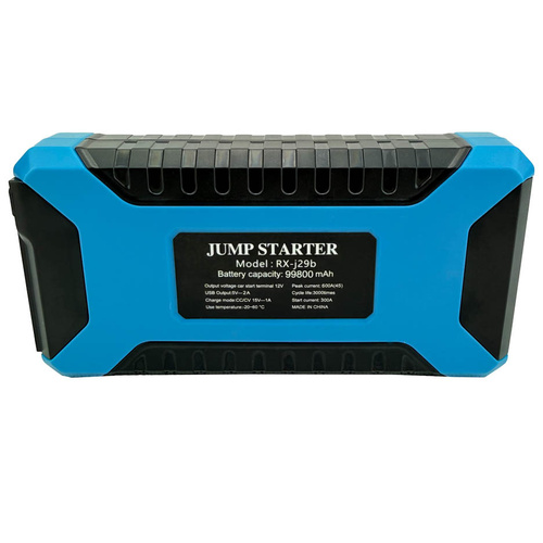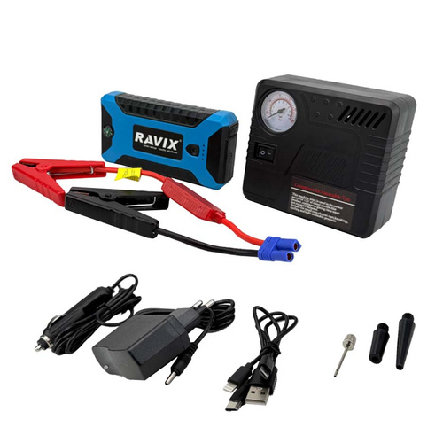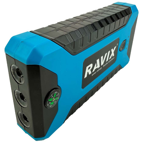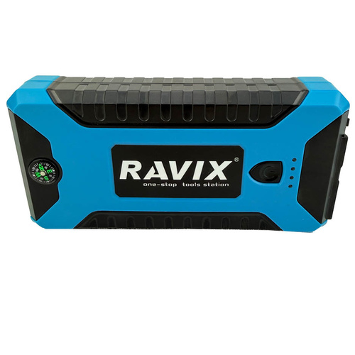 جامپ استارتر و کمپرسور فندکی راویکس مدل RX-J29B یکی از محصولات فوق العاده شرکت راویکس می باشد . تا همین چند وقت پیش اگر باتری ماشین میخوابید و کار نمیکرد مجبور بودیم با باتری به باتری کردن و یا هل دادن آن را راه بیاندازیم. اما حالا با جامپ استارتری که در صندوق عقب ماشین دارید به راحتی جریان اولیه مورد نیاز را به باتری میدهید تا خودش کار کند.شیوه اتصال دستگاه بدین صورت است که باید ابتدا کابل را به جامپ استارتر متصل کرده و طرف دیگر آن که شامل دو گیره است را به سمت مثبت و منفی باتری وصل کنید. پس از مطمئن شدن از اتصال صحیح، باید استارت ماشین را بزنید و بلافاصله جامپ استارتر را جدا کنید.این دستگاه جامپ استارتر و کمپرسور فندکی باس دارای ویژگی هایی از قبیل ظرفیت باتری 99800mAh و قابلیت استارت باتری خودرو و مناسب جهت راه اندازی وسایل الکترونیک خودرو و مناسب برای شارژ همزمان موبایل، تبلت و ... و راه اندازی باتری ماشین و دارای چراغ قوه LED و دو عدد چراغ فلشر اضطراری آبی و قرمز و خروجی USB چهارتایی و همراه با یک عدد پمپ باد پر قدرت برای باد لاستیک خودرو و چکش اضطراری و کاتر برش کمربند خودرو می باشد که تمامی اجزا در یک کیف بسیار عالی تعبیه شده اند.